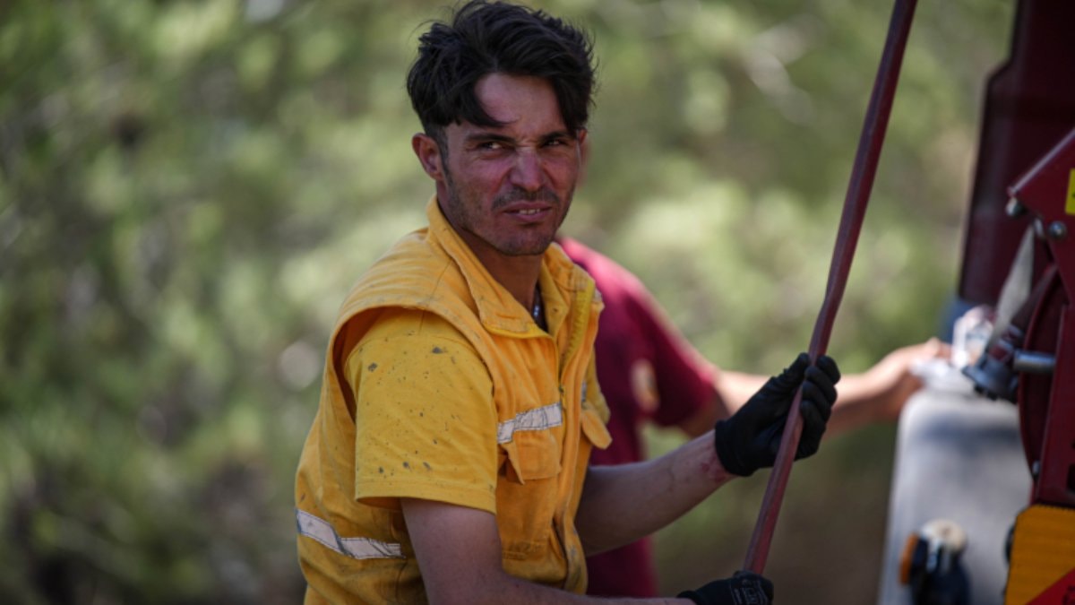 Muğla'dan gelen orman muhafaza memuru Hayati Yeter de rüzgarın kendilerini olumsuz etkilemesine rağmen yangını söndürmek için canla başla mücadele ettiklerini anlattı.
