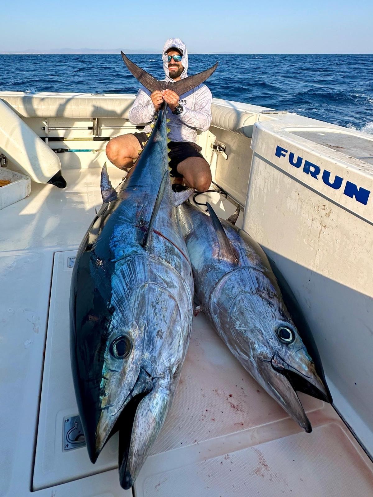 Yanındaki balık tutkunlarıyla birlikte denize misinasını salan Dursun'un oltasına, 3 gün içerisinde 200 santim üzerinde ve ağırlıkları 120, 150 ve 160 kilo olmak üzere üç Mavi Yüzgeçli Orkinos takıldı.