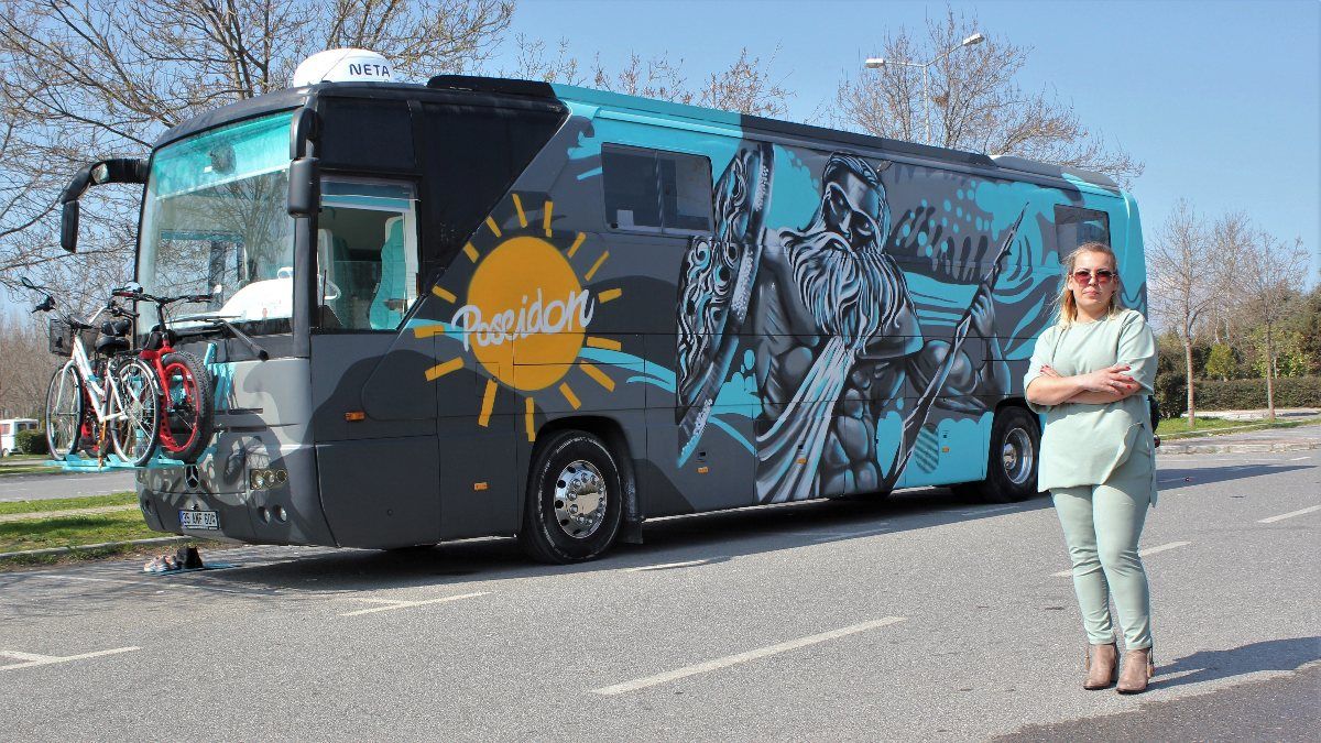 İzmir’de yaşayan turizmci Tuğba Atila (35), 10 yıldır hayalini kurduğu otobüs karavan hayalini gerçeğe dönüştürdü.