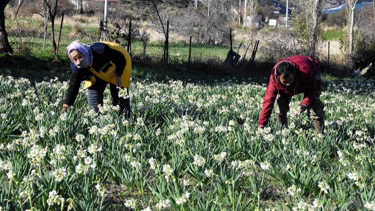 İzmir'in Karaburun ilçesindeki tarlalarda yetiştirilip, Türkiye’nin dört bir tarafına gönderilen nergislerin hasat zamanının sona ermesine birkaç hafta kaldı.