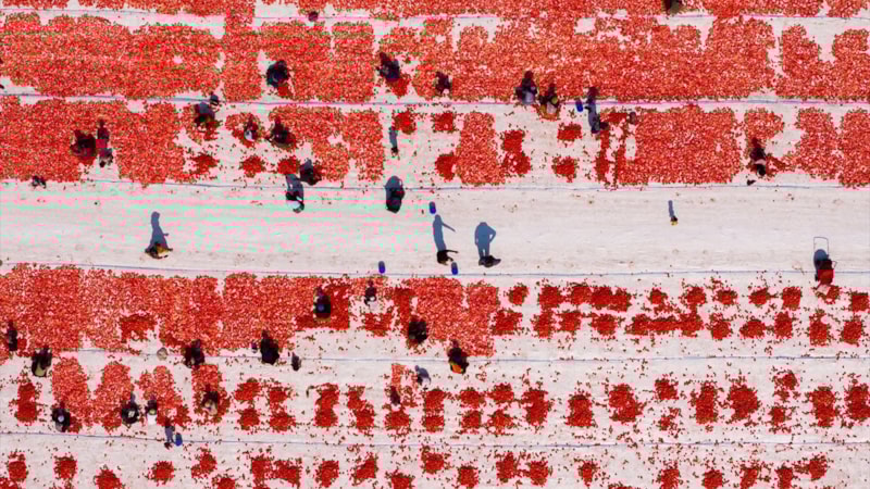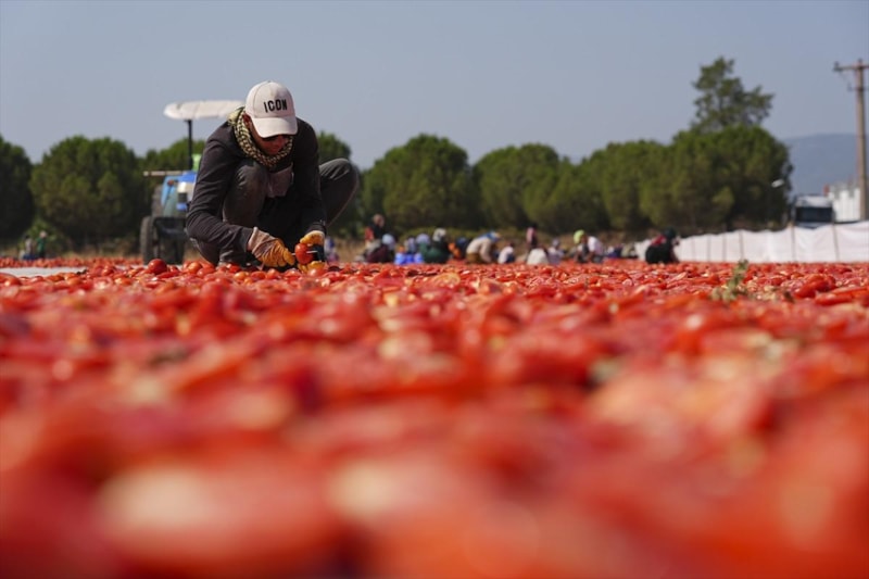 Türkiye'nin kurutulmuş domates üretim merkezlerinden biri olan İzmir’in Torbalı ilçesinde, sıcak havalarla birlikte kuru domates sezonu başladı.