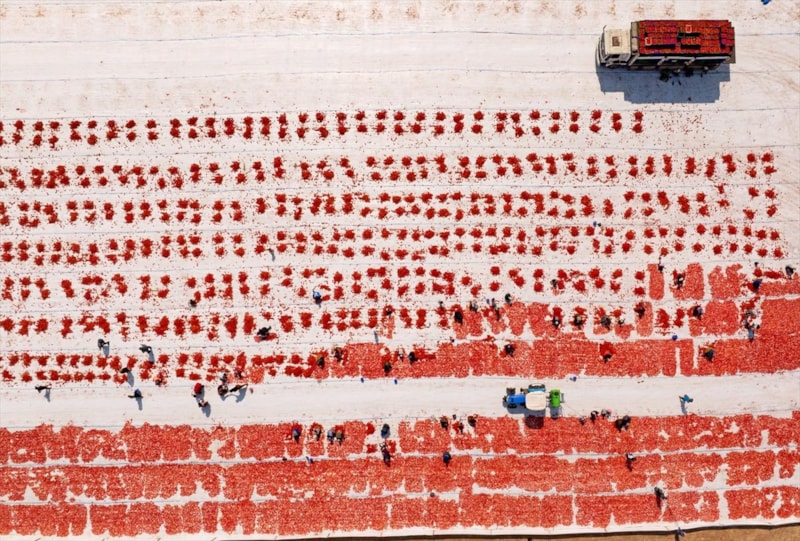 Kuru domates üreticisi ve ihracatçısı Kemal Saygıner, sezonun başlamasıyla her sabah yaklaşık 20 kamyon dolusu domatesin sergi alanına getirildiğini belirterek, "Domatesler tek tek kesilerek kurumaya bırakılıyor. Kurutma işleminin ardından ürünleri işletmemize taşıyoruz. Burada ön seçim yapılıp, soğuk hava depolarına alınarak muhafaza ediliyor. Amerika, Brezilya, Fransa ve Almanya gibi ülkelere ihracat yapıyoruz. Şu anda satış fiyatı Avrupa için yaklaşık 3,5 euro, Amerika için ise 4,5 dolar civarında." dedi.