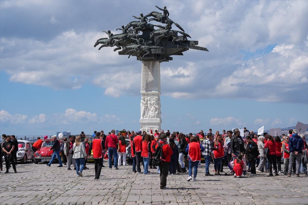 Ayrıca, klasik Vosvos otomobillerinden oluşan renkli bir konvoy da gruba eşlik etti. Etkinlik, Cumhuriyet Meydanı’ndaki Atatürk Anıtı'na çelenk sunulmasıyla son buldu.