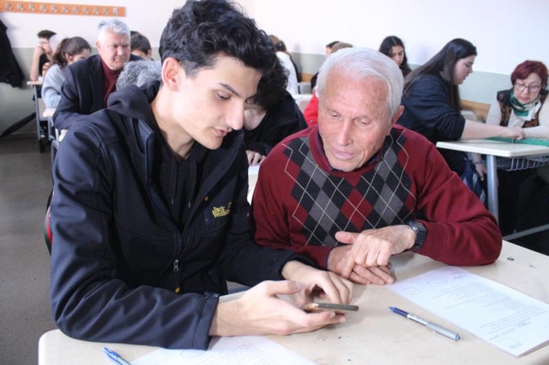 60 yaş üstü öğrenciler bazı derslere liseli öğrencilerle birlikte giriyor, onlara özelikle cep telefonu konusunda merak ettikleri soruları da soruyor.
