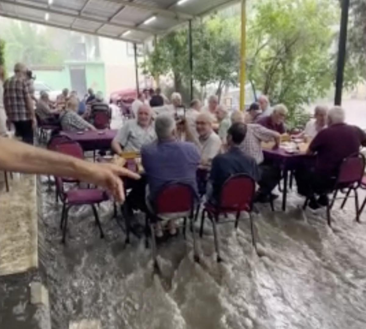 Kahvehanede oturan Özkan Diker, gazetecilere "Yoğun bir yağış oldu. Kahve baştan başa doluydu. Yaşlı insanlar bile oyun oynamaya devam etti." dedi.