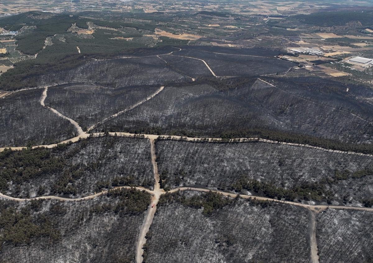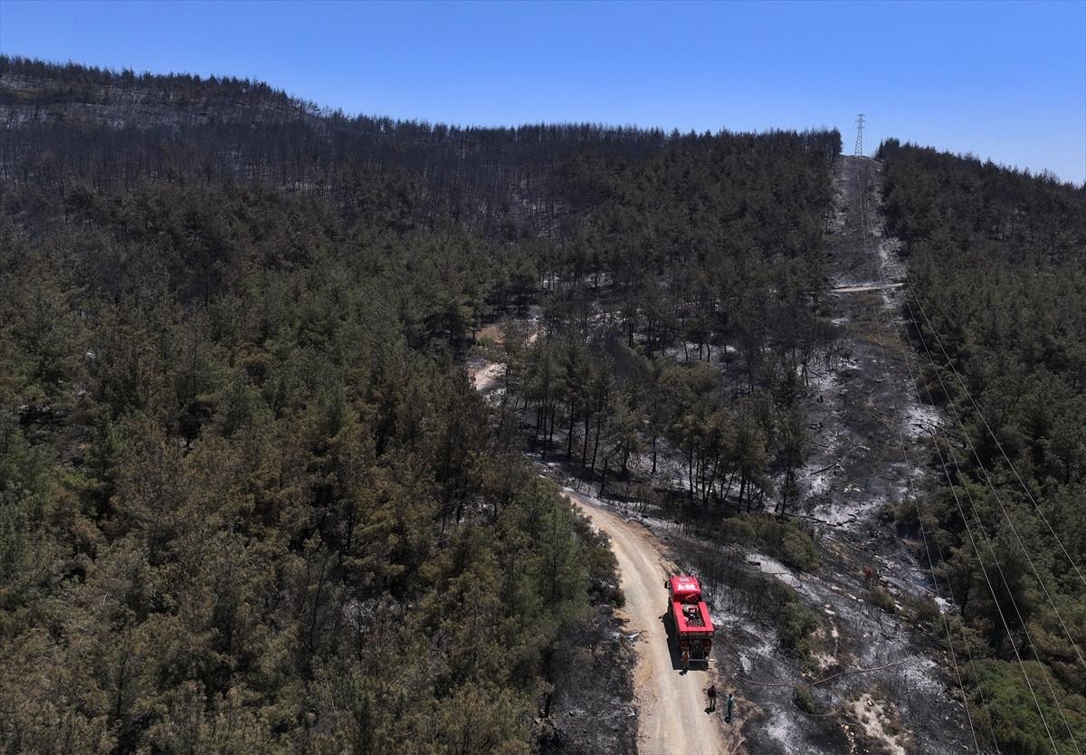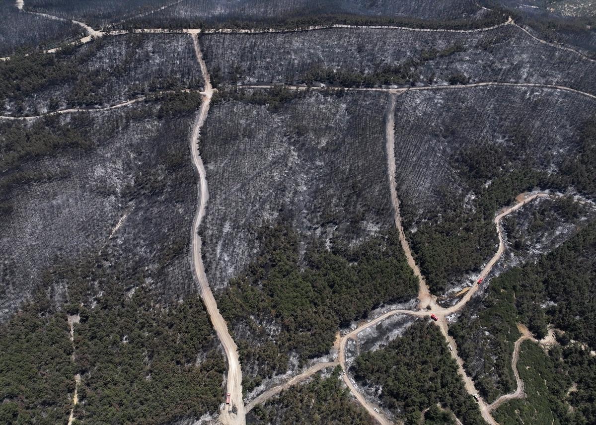 Görüntülerde, ormanlık alanın alevler nedeniyle siyaha bürünmesi yer aldı.