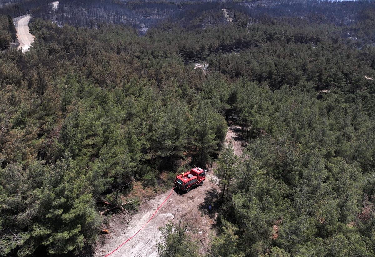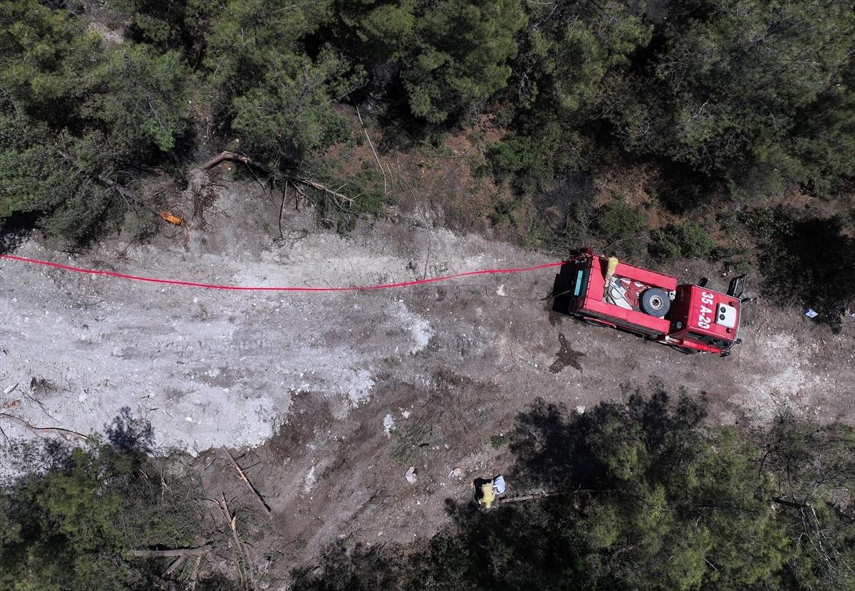 İzmir Orman Bölge Müdürlüğüne ait 6 helikopter, 46 arazöz, 9 dozer, 13 su ikmal aracı ve su tankeri, gece boyunca alevlerle adeta savaştı.