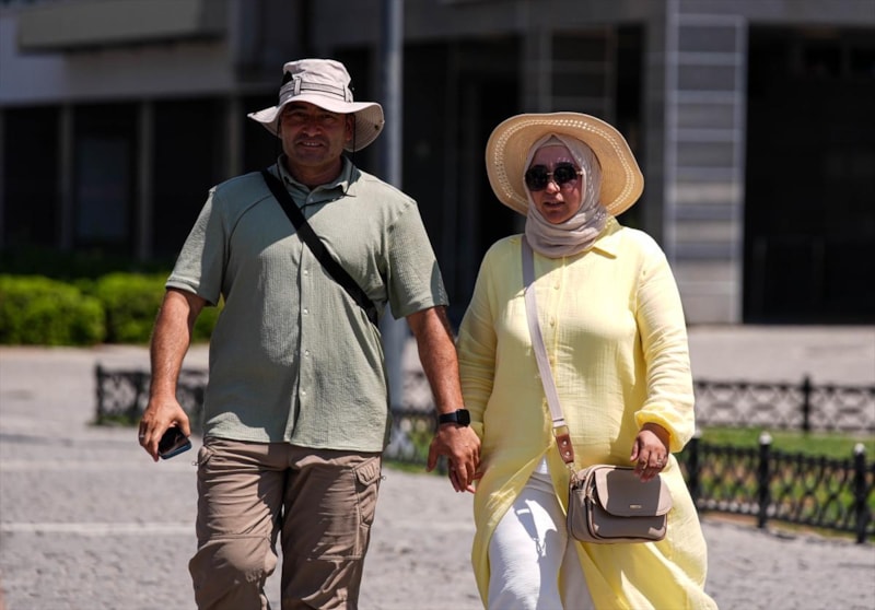 Yelpaze ile serinlemeye çalışan Mehtap Doğan ise bol bol su içtiğini, krem sürdüğünü, gözlük ve şapka takarak önlem aldığını söyledi.