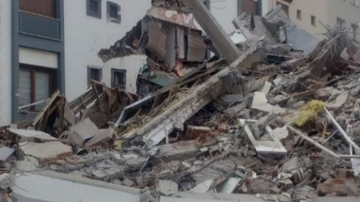 Ayrıca, çalışma yapan bir iş makinesinin üzerine de moloz yığınlarının düştüğü görüldü.