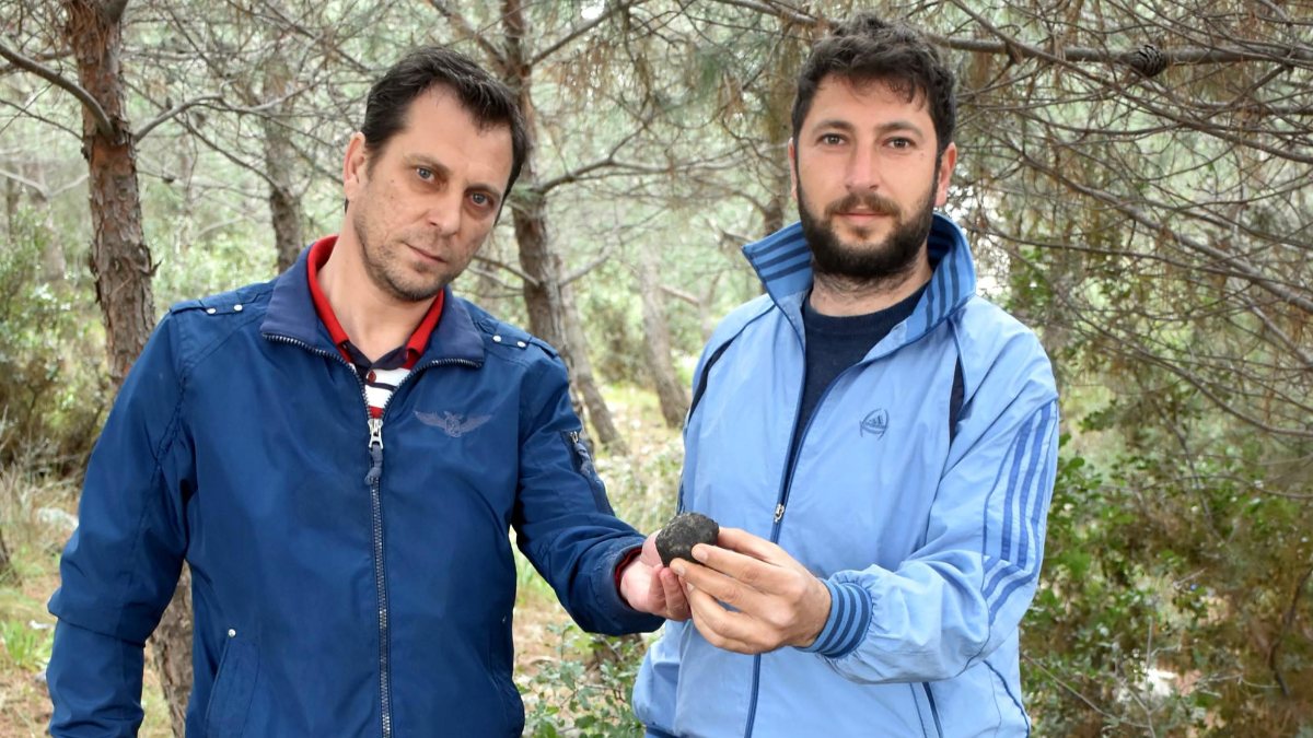 İzmir'in Çiğli ilçesine bağlı Evka- 2 Mahallesi'ndeki dağlık alanda yürüyüşe çıkan belediyede taşeron işçi olarak çalışan Ozan Hantekin ile iş arkadaşı Ufuk Çetin, değişik olduğunu fark ettikleri taşı alıp, internette araştırma yaptı.