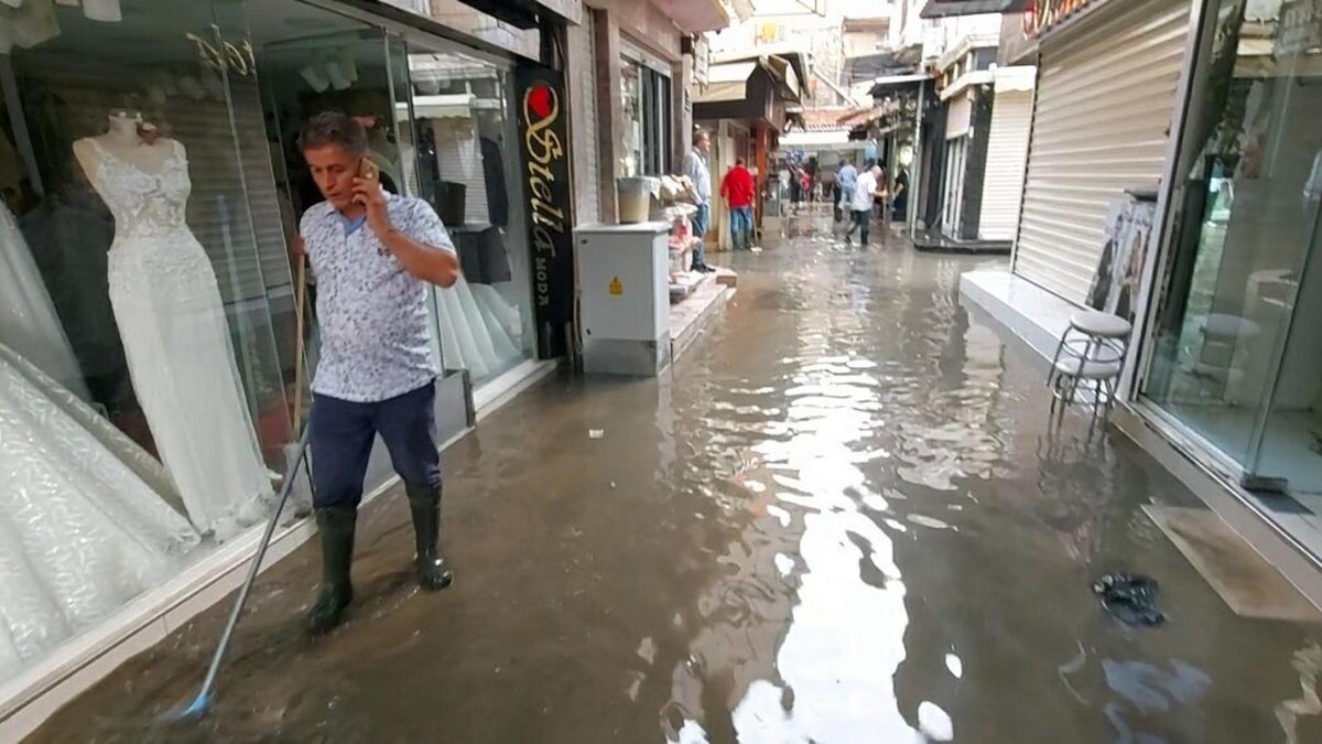 Yağış sırasında çarşının altyapısı tamamen çöküyor ve bütün dükkanları su basıyor.