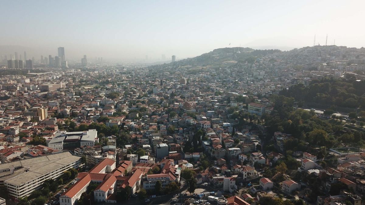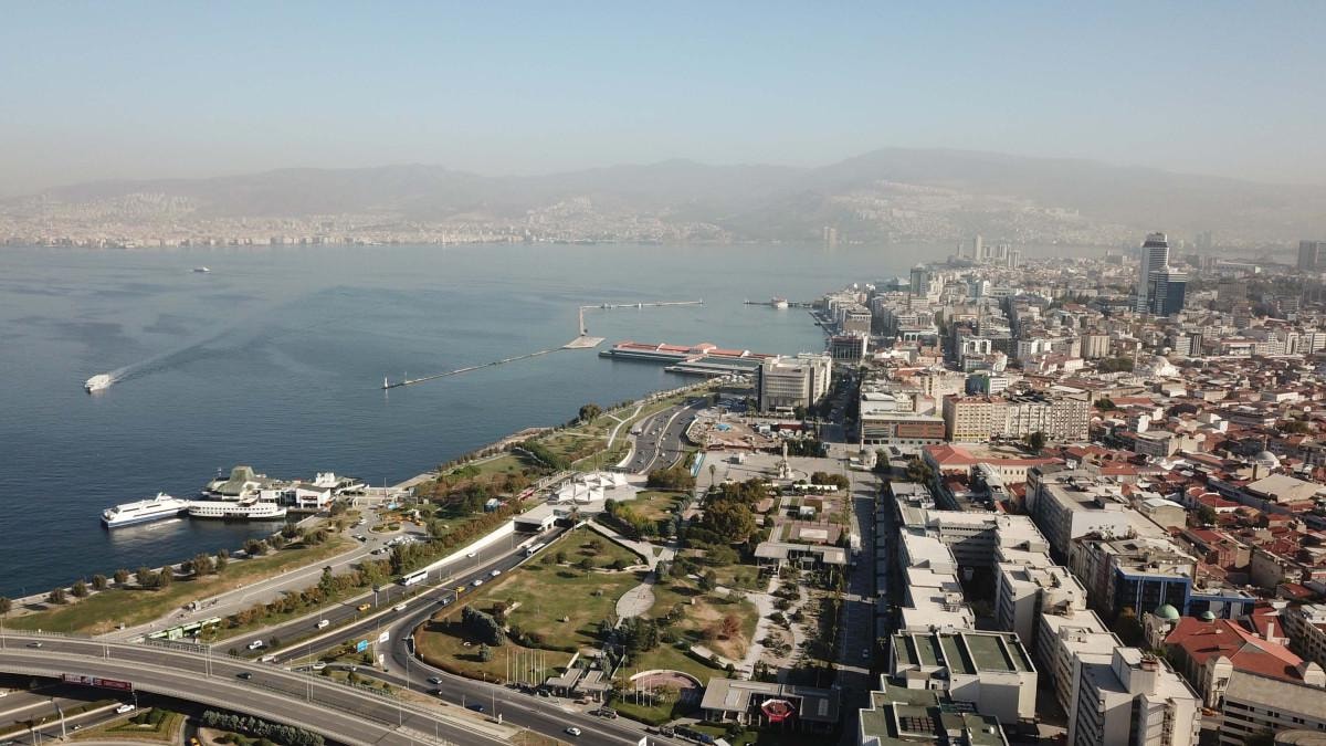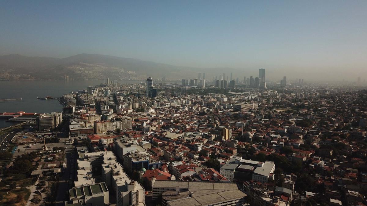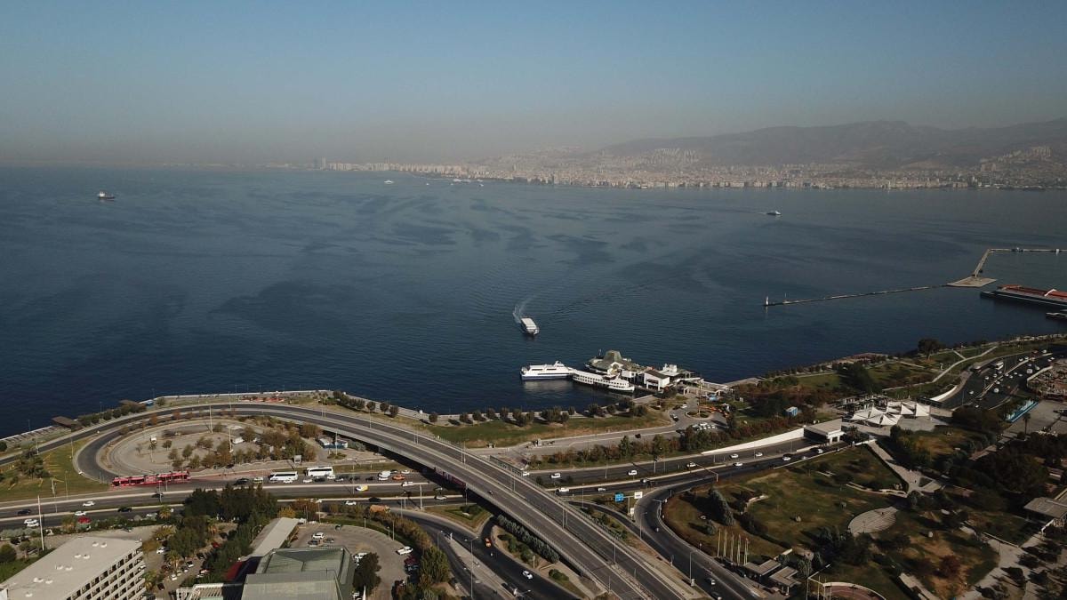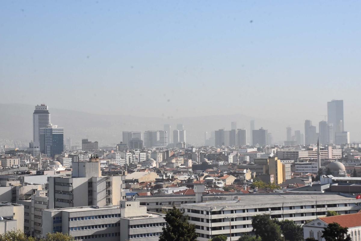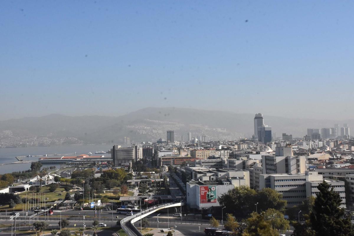İzmir'de sis bulutu nedeniyle bazı bölgelerde görüş mesafesi azaldı.