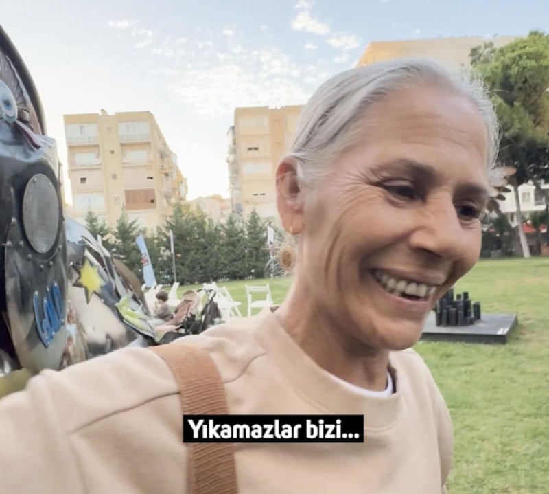 İzmir'deki çöp krizine de gönderme yapan kadınlardan biri, "Niye atıyorsun çöpleri? İzmir'in her yeri çöp oldu. Kız çöpe bak. Bunlar çöpten yapıldı bak bunlar çöpten yapıldı. İnsanlar yapmış, sanat bunlar sanat." ifadelerini kullandı.