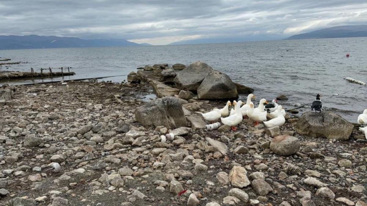 Bazilika gölün yüzeyinde görünür hale gelerek kıyıyla birleşti.