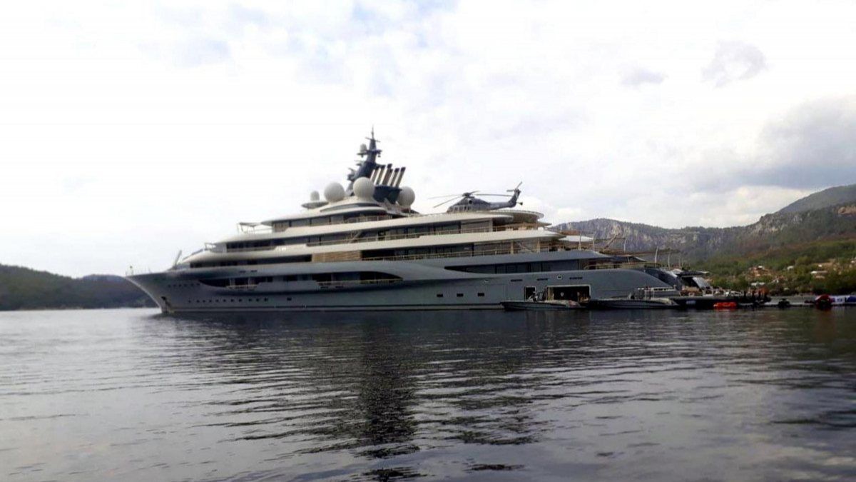 Yatta bulunan iki adet helikopter pistinden birinde helikopterin bulunduğu görüldü.Yatın, Akbük Koyu'ndan ne zaman ayrılacağı ise bilinmiyor.