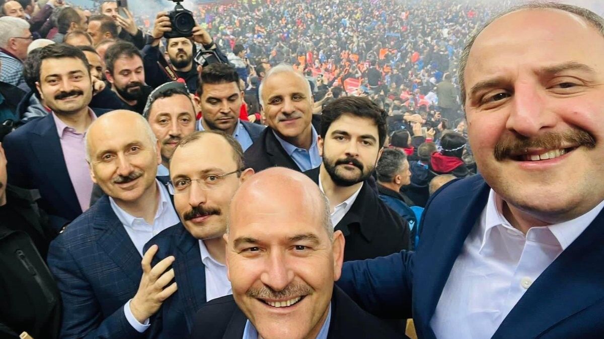 Coşkulu taraftarları arkalarına alan bakanlar, Varank'ın çektiği Selfie'ye poz verdi.