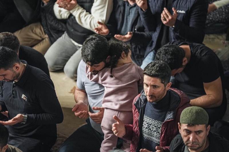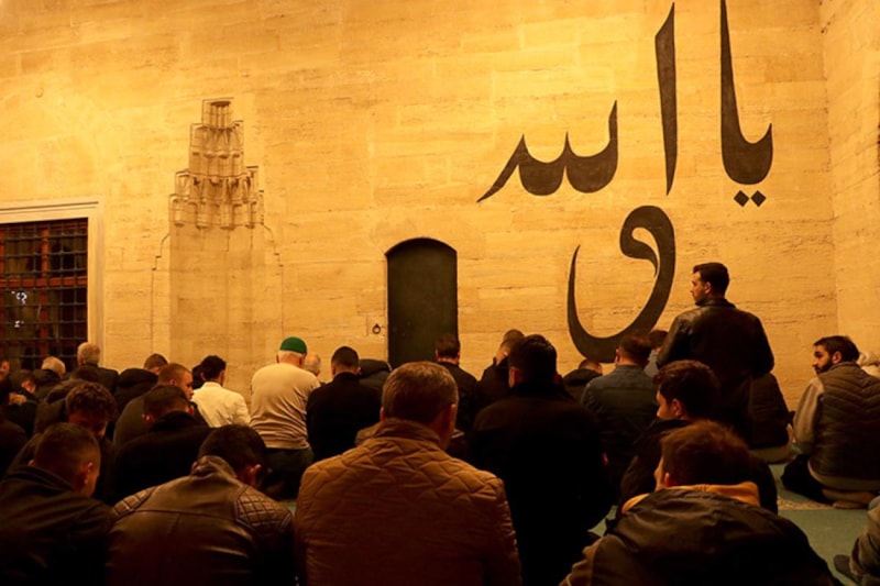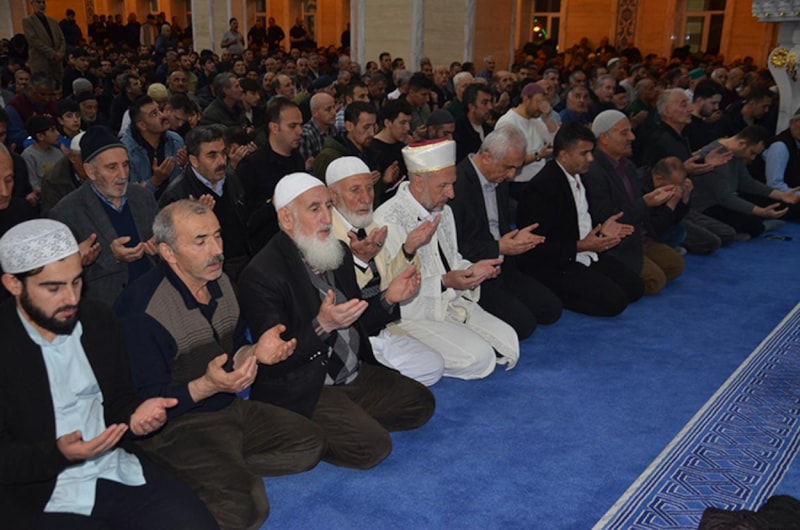 Yatsı ezanı öncesi camide Kur'an-ı Kerim okundu, dualar edildi. Genç-yaşlı, kadın-erkek binlerce kişi el açarak yapılan dualara hep birlikte "amin" dedi.