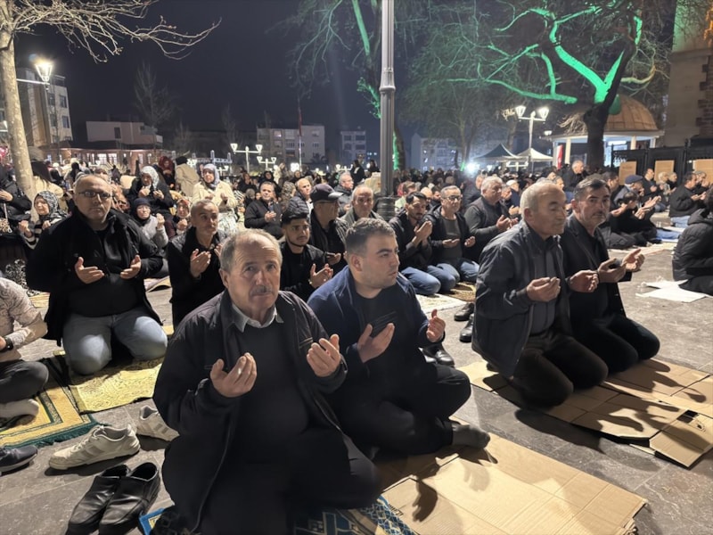 Yatsı ezanından sonra camileri dolduran vatandaşlar, Kur'an-ı Kerim okuyup dua etti. Camide yer bulmakta güçlük çeken vatandaşlar, avlulara serdiği seccadelerde namaz kıldı.