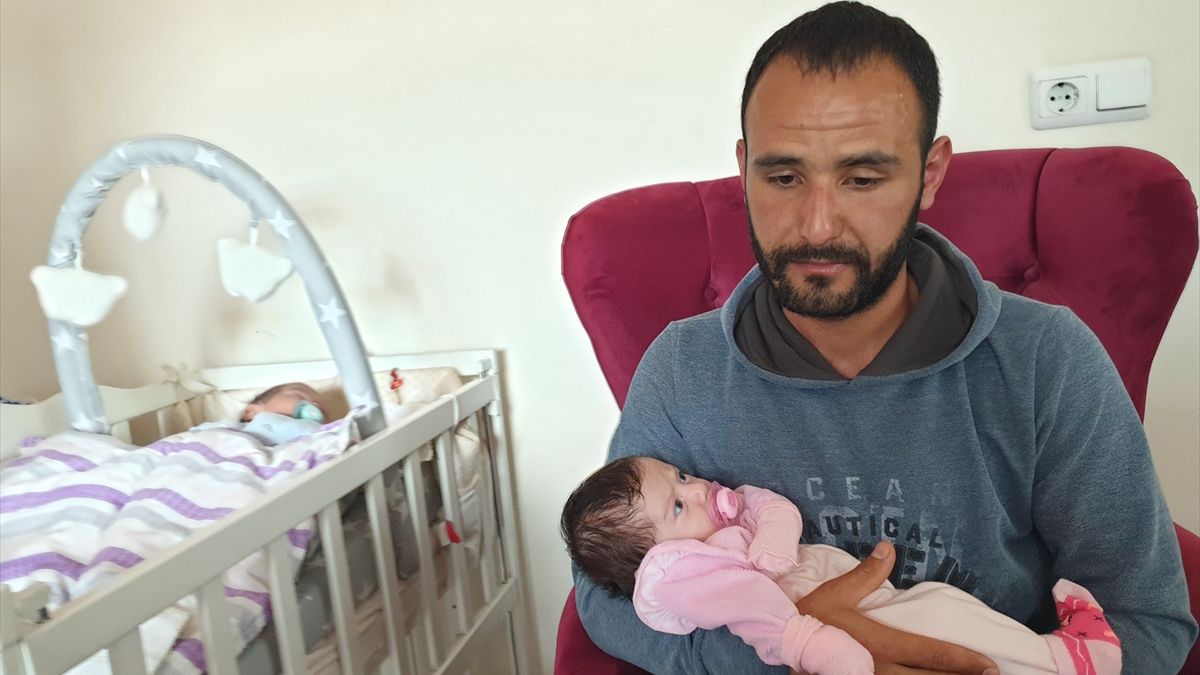 Genç kadının cenazesini İlbistanlı köyündeki mezarlığa defneden Ali Tapanç, ikizleriyle hayata tutundu.