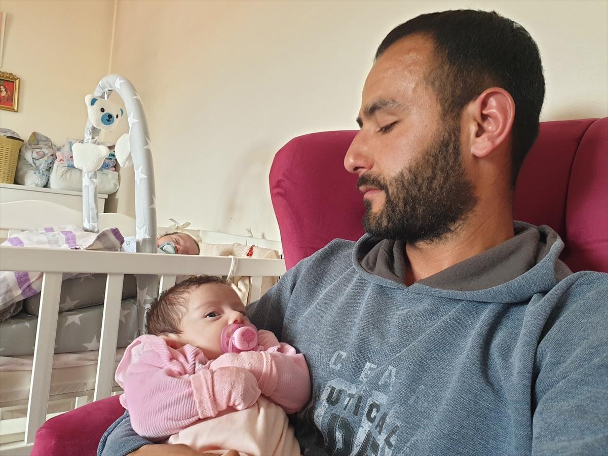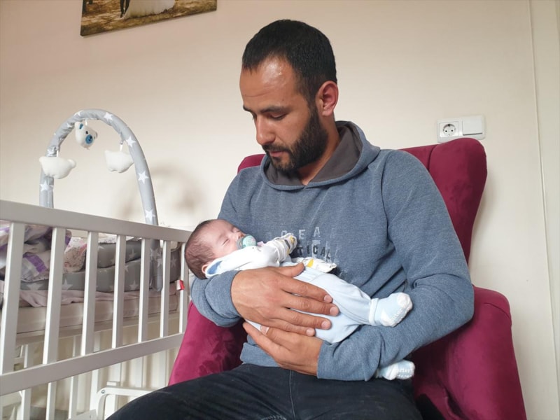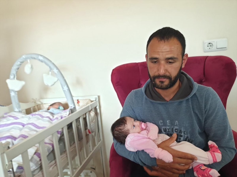 İlçedeki evlerinde iki aylık bebekleriyle yaşamını sürdüren baba Tapanç, yakınlarının da desteğiyle çocuklarına anne ve babalık yapıyor.