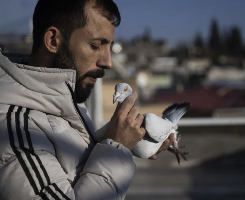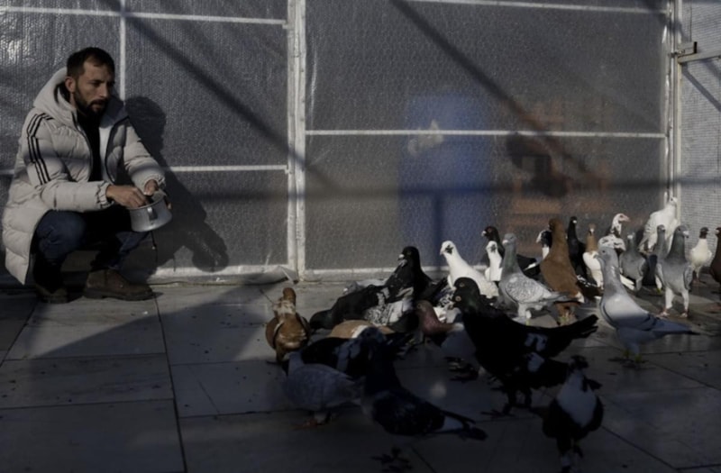 Evinin terasında güvercin besleyen Karpuz, depremden sonra yağmur suyuyla besleyip hayatta kalmasını sağladığı farklı cinlerdeki yaklaşık 150 tane güvercinlerinden bir an olsun ayrılmıyor.
