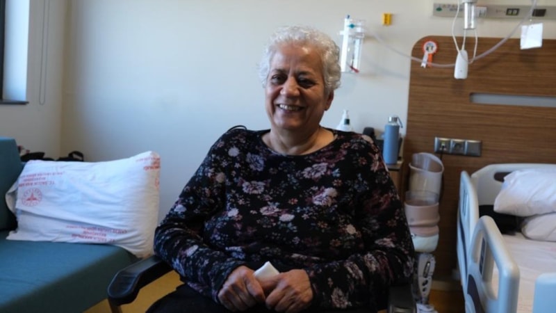 Deprem sonrası bacakları kesilen 63 yaşındaki Aysel Keskin, yaklaşık 1 yıldır şehir hastanesinde tedavi gördüğünü ifade etti. Kimi zaman duygusal anlar yaşayan Keskin, “Depreme Adıyaman’da yakalandım. Bir sitede oturuyorduk, 6 katlı bir binaydı, 4’üncü katındaydık. İlk depremin son saniyelerinde evimiz yıkıldı, ayağıma kolon düştü. 5 gün o şekilde kaldım, oğlum, eşim, ben 3 kişi yaşıyorduk, eşimi kaybettik. Oğlum yatak odasının penceresinden dışarı düşmüş.