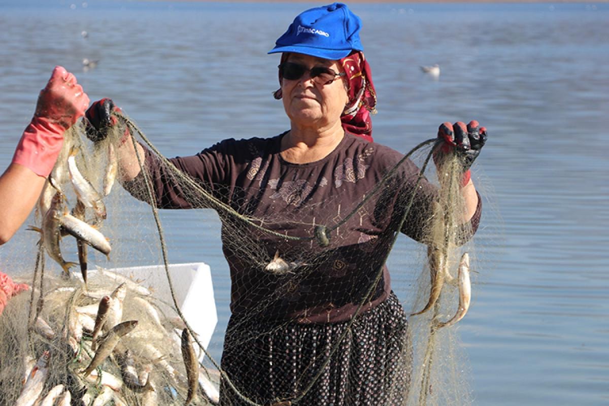 75 yaşındaki Döndü Yiğit, hem balıkçılık yapıp hem de ağ üretimiyle ailesini geçindirdiğini, 4 çocuğunu bu meslekle büyütüp evlendirdiğini anlatıyor: