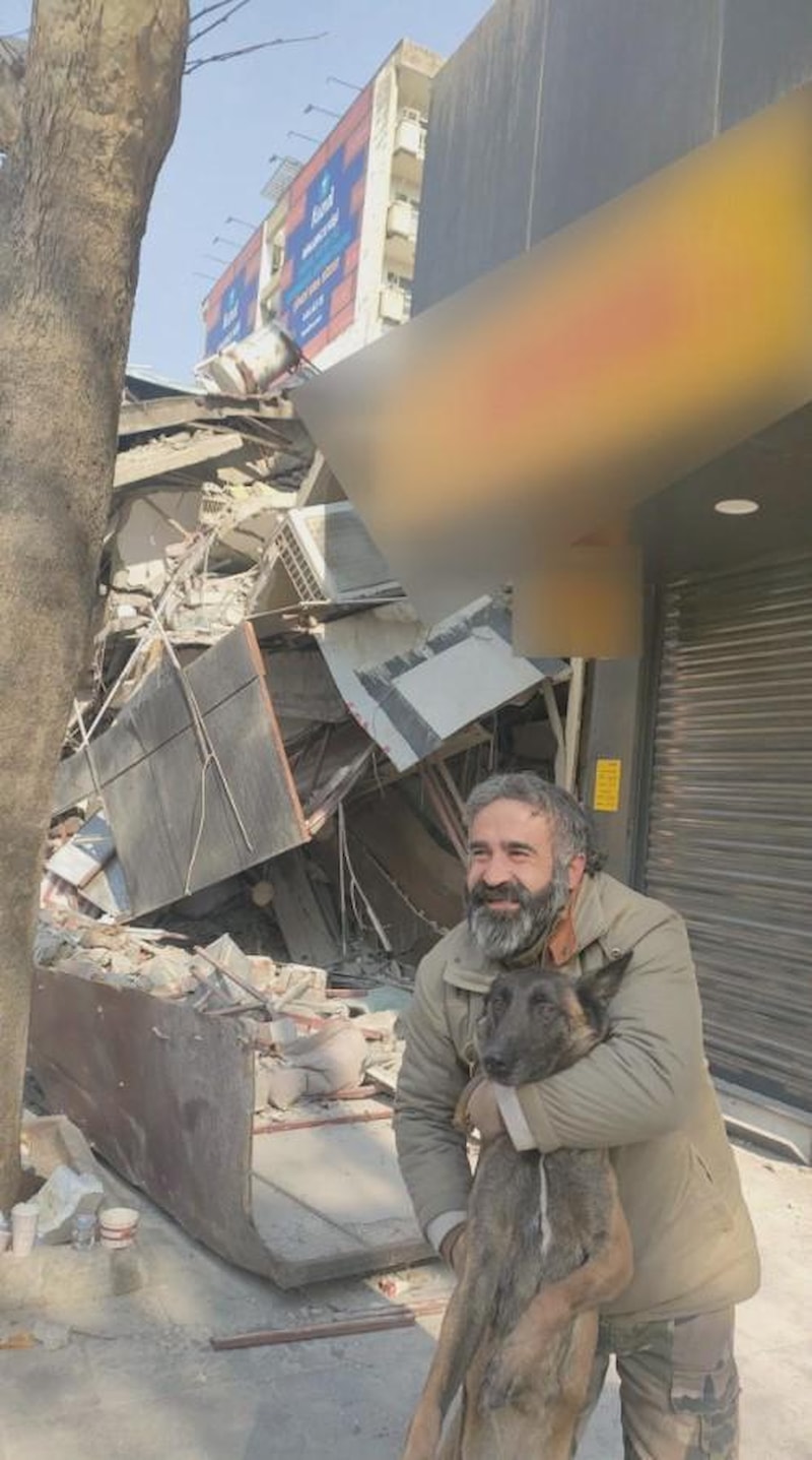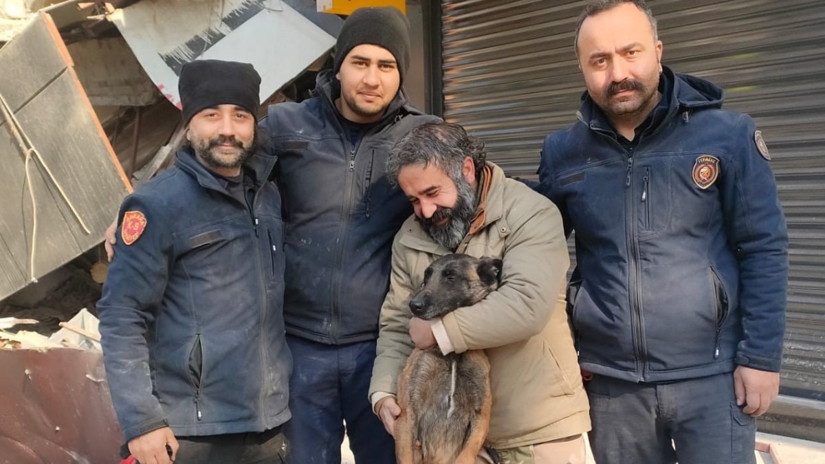 Depremlerin merkezi Kahramanmaraş’ta yıkılan bir binada apartman görevlisi olarak çalışan Mehmet Çabuk’un enkaz altındaki yerini Ankara İtfaiyesi canlı insan arama-kurtarma köpeği K-9 cinsi Çakıl tespit etti.