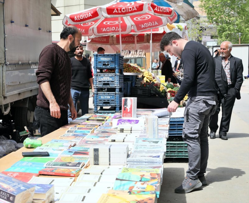 Depremde ağır hasar alan deposundaki kitapların bir kısmını kurtarabilen Aydoğan, Tarihi Maraş Çarşısı etrafına tezgah kurarak satışa başladı.