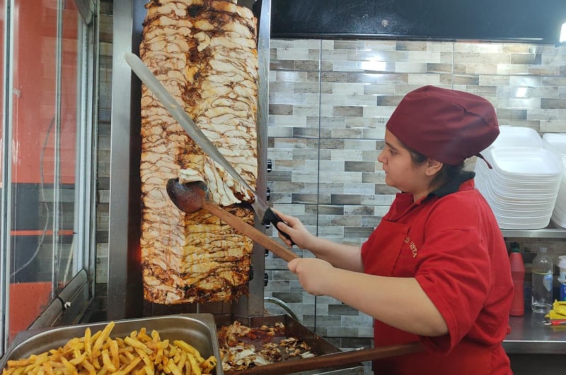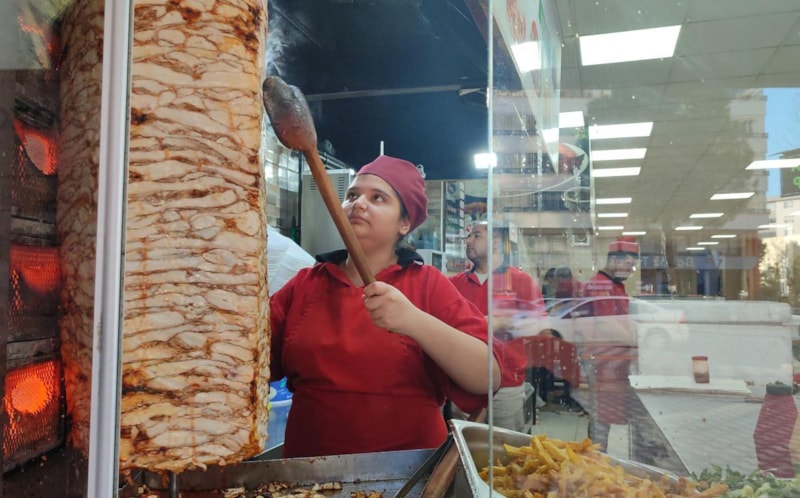 Kahramanmaraş'ta Onikişubat ilçesi Akif İnan Mahallesi'ndeki kendi işletmelerinde döner ustası olan 14 yaşındaki Elif Naz Savran, mesleğe depremden sonra babasına yardım için gittiği iş yerinde başladı.