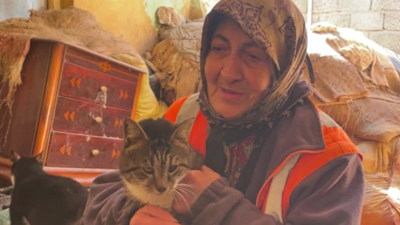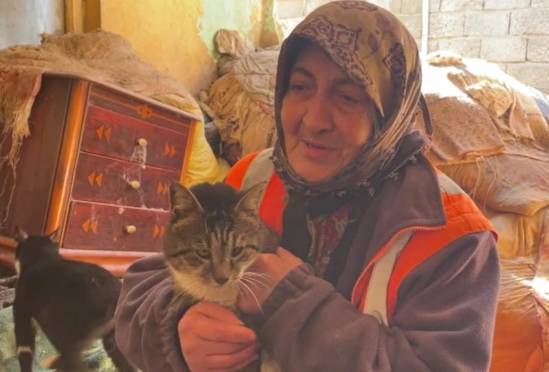 Depremin merkezindeki evi büyük hasar gören 65 yaşındaki Fatma Var, kedilerinin aç ve yalnız kalmaması için dairesinden ayrılmıyor.