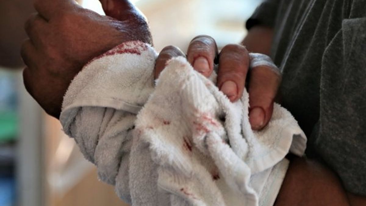 Bıçak darbesiyle yaralananların ellerini çeşitli bezlerle sardığı görüldü.