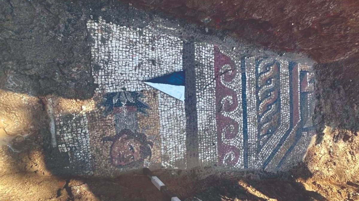 Kahramanmaraş'ın Bağlarbaşı Mahallesi’ndeki Tevfik Kadıoğlu Bulvarı’nda yürütülen deprem iyileştirme ve yeniden yapılandırma projesi kapsamında altyapı çalışmaları sırasında işçiler, Geç Roma Dönemi’ne ait taban mozaiği buldu.
