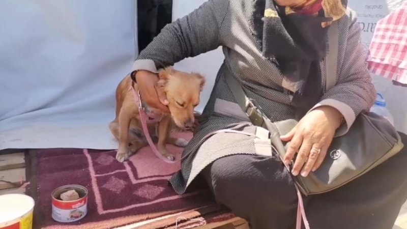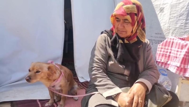 Depremzede kadın, ilk sarsıntıdan önce sahibini tırmalayan ve uluyarak uyanmasını sağlayan "Mihriban" adlı köpeğiyle beraber yaşamını sürdürüyor.