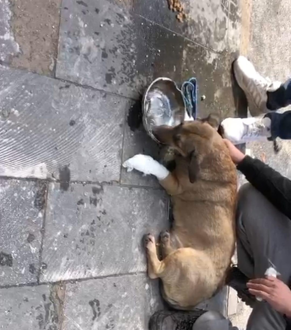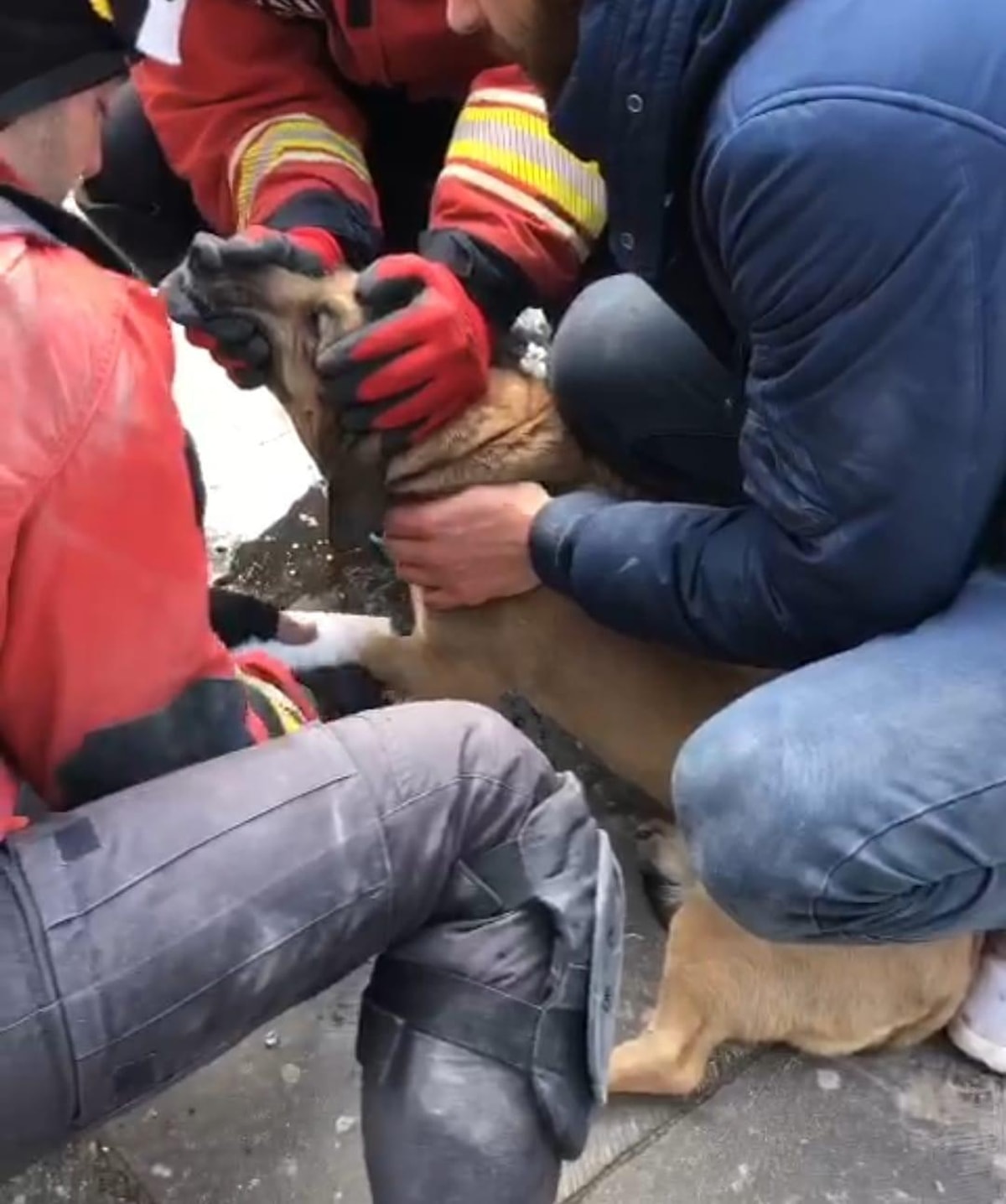 Enkazdan çıkarılan köpeğe orada yapılan ilk müdahalenin ardından su verildi. Sahibinin ise cansız bedeni enkazdan çıkarıldı.