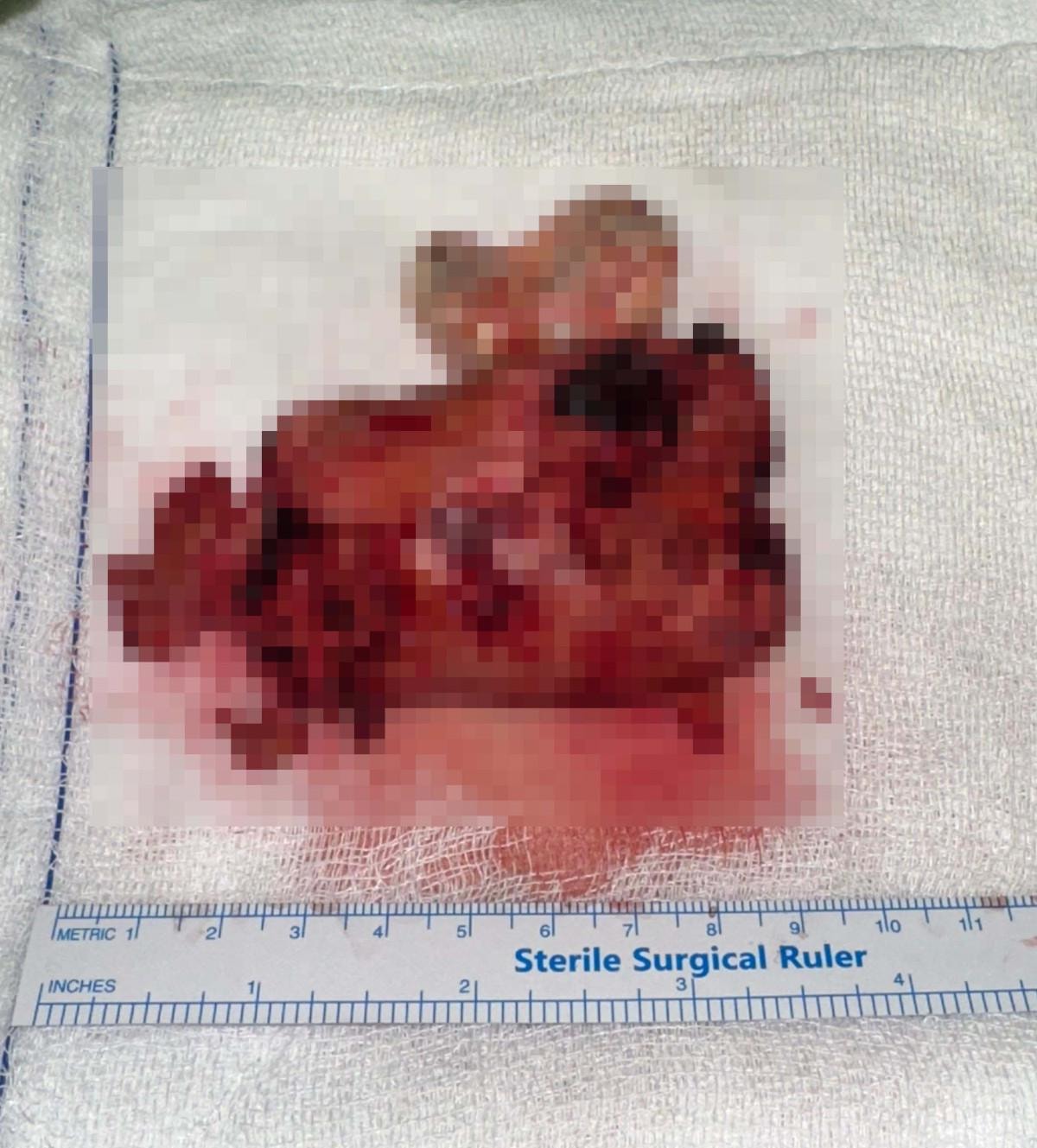 Ameliyat sonunda Karabörk’ün kalbinden, 10 santimetre büyüklüğünde ve 250 gram ağırlığında kitle çıkarıldı.