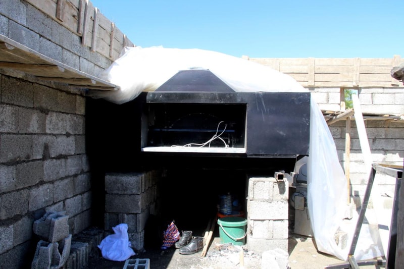 Hava sıcaklıklarının artması ve hijyen sorunun ortaya çıkmasıyla çare arayan muhtar, hayırseverlerin destekleriyle mahalle arasında bir geçici fırın inşasına başladı.