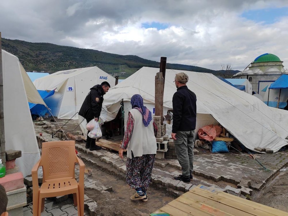 Hazırladıkları kumanyaları Kahramanmaraş’ın Türkoğlu ilçesine bağlı Şekeroba köyüne götürerek, çadırlarda kalan vatandaşlara teslim etti.