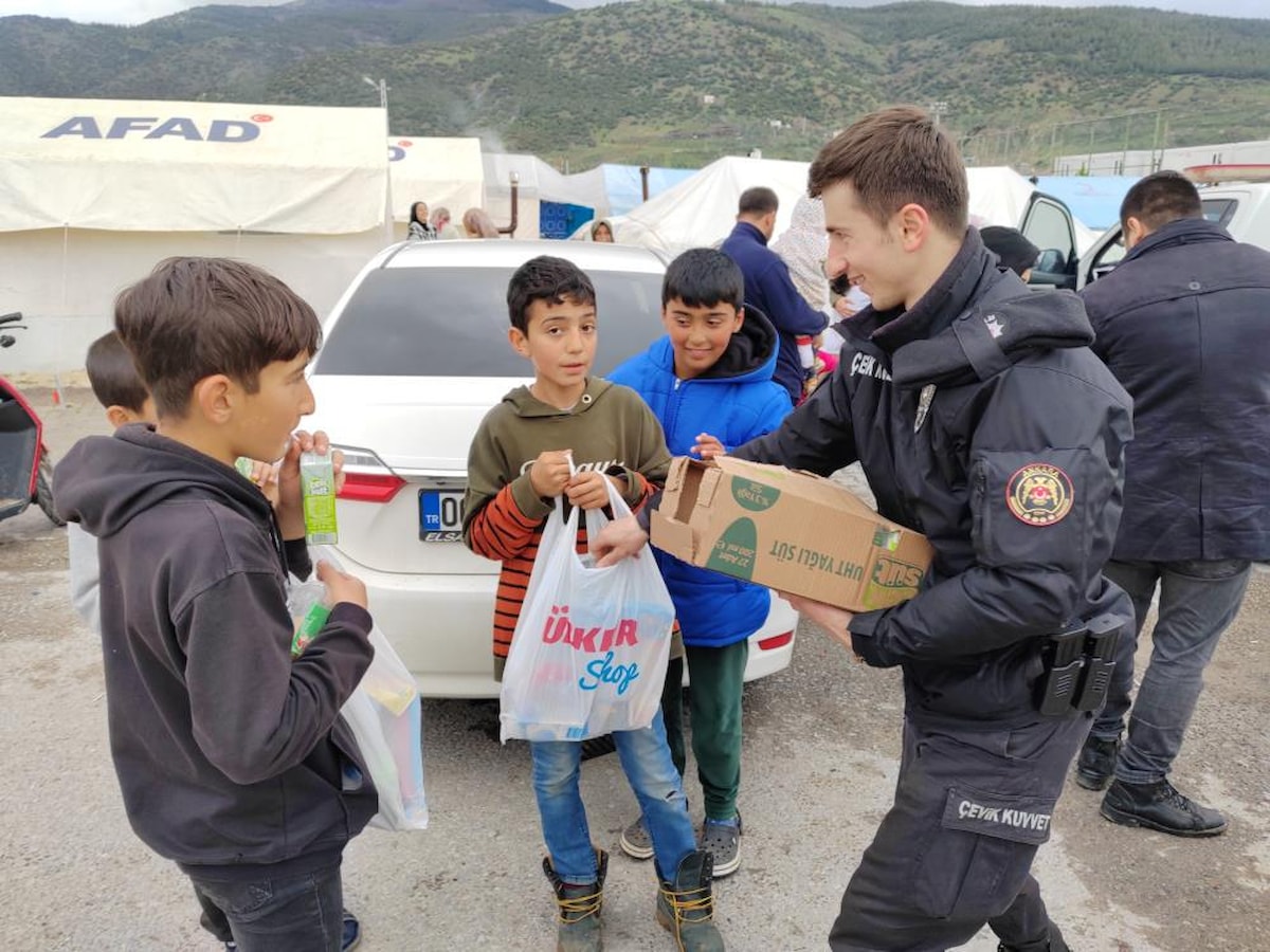 Depremin ilk gününden itibaren bölgelerde görev yapan güvenlik güçleri, depremzede vatandaşların her konuda yanında olmaya devam ediyor.
