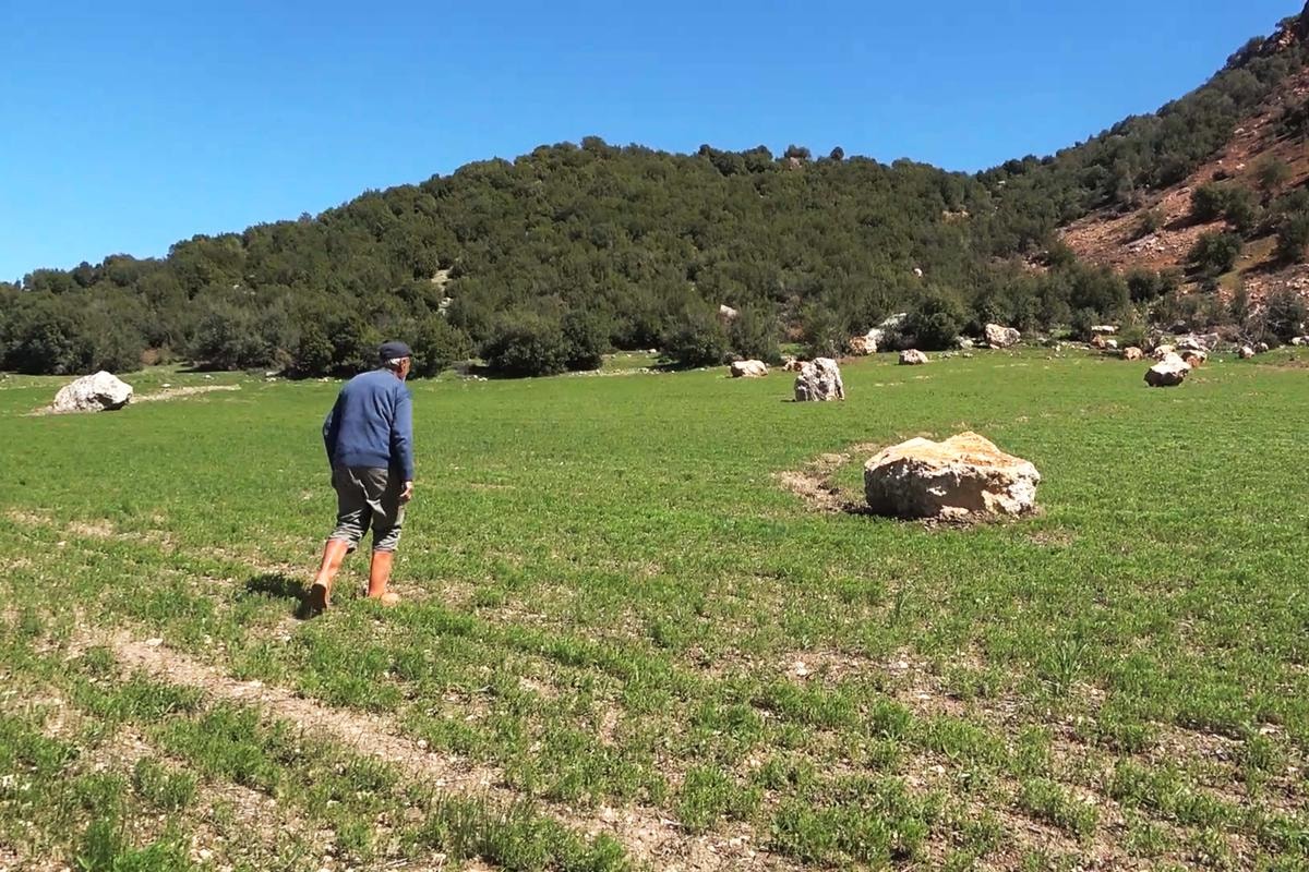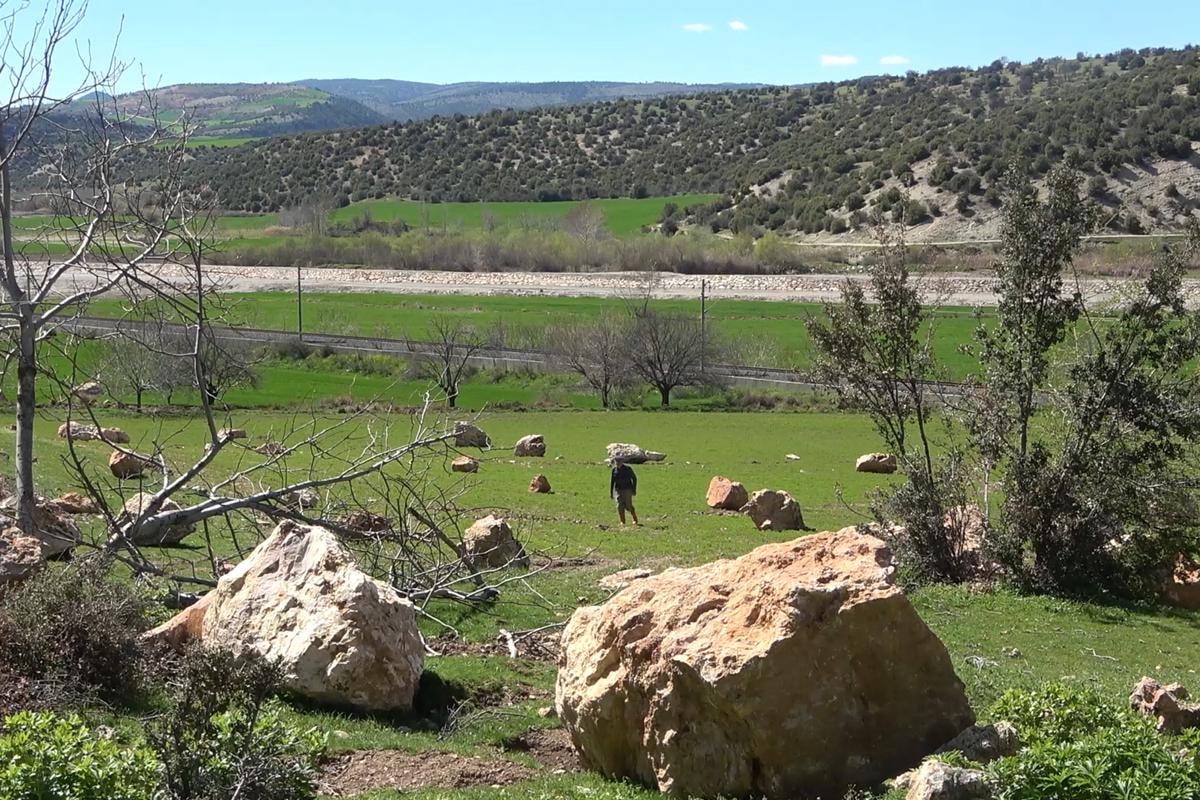 Pazarcık'tan geldik 'taş düşmüş' dediler. Geldik ki şoke olduk dağdaki taşlar tarlanın içine gelmiş. Her taraf koca koca kaya ekin batmış. Deprem hızlı olmuş. Kayalar insan boyundan fazla yarısı da yere gömülmüş tarlanın içine. Buğday tarlasına çok kaya düşmüş. Felaket oldu.