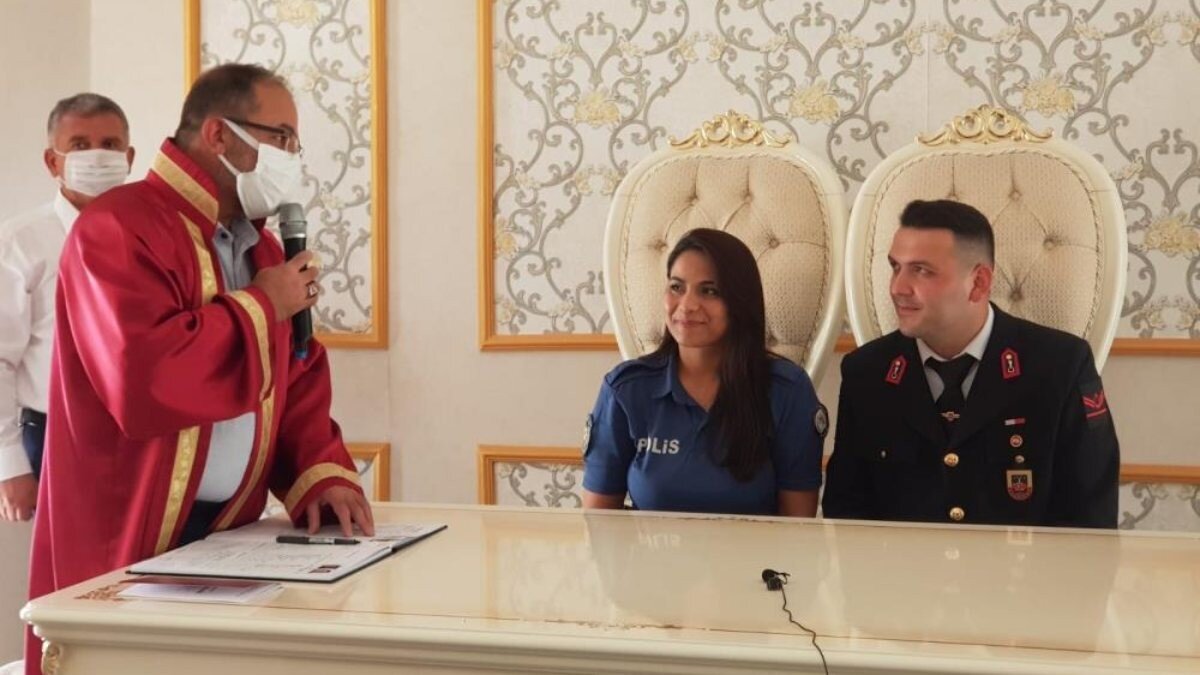 Üniformalarıyla nikah törenine katılan çiftin nikahını kıyan Afşin Belediye Başkanı Mehmet Fatih Güven çifte mutluluklar dileyerek, Kuran-ı Kerim ve Türk bayrağı hediye etti.
