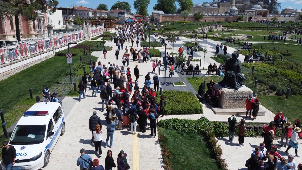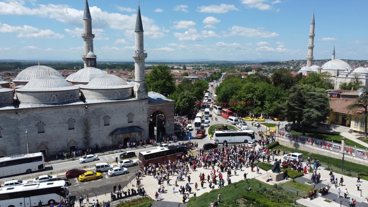 Turistler Selimiye Camisi Meydanı'nı doldurdu