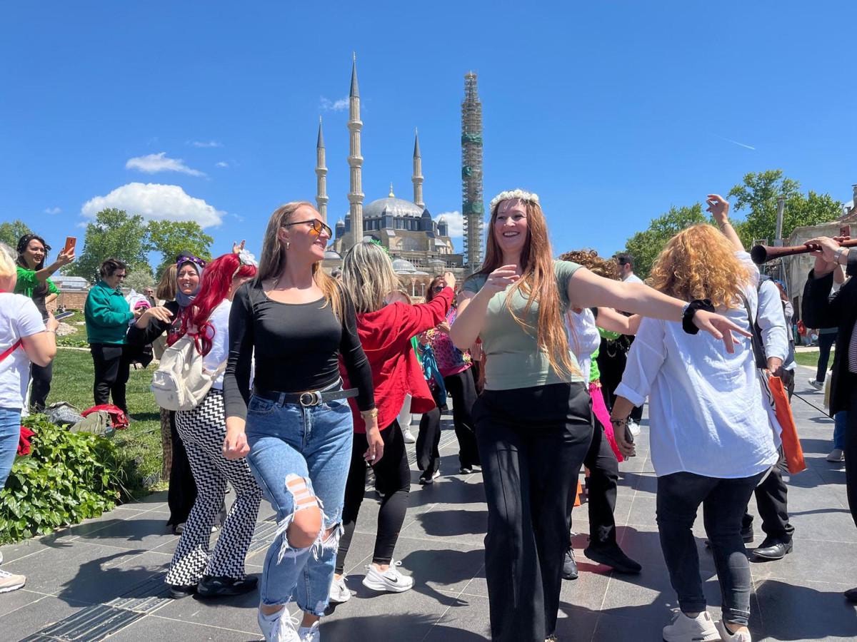 Türkiye'nin çeşitli bölgelerinde gelen turistler, başta Selimiye Camisi Meydanı, Tahmis Meydanı ve Sarayiçi'nde davul zurna eşliğinde oyunlar oynayarak, renkli görüntüler ortaya koydu.