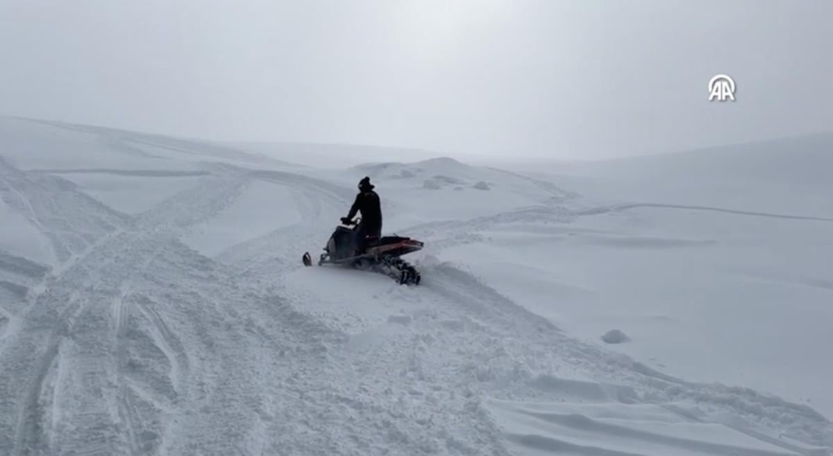Kayak yapan ve kar motoruyla yaylayı gezen misafirler, seyrine doyumsuz manzaranın tadını çıkardı.
