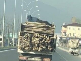 Sakarya Adapazarı'ndaki çevre yolunda bir işçi, seyir halinde olan kamyonetin kasasında, kerestelerin üzerine uzandı. Rahatını bozmayarak yolculuğunu sürdüren işçiyi görenler, büyük şaşkınlık yaşadı.