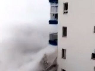 Dalgalar birçok binaya zarar verdi. Hatta dalgalar o kadar güçlüydü ki bir binanın ikinci ve üçüncü katında bulunan balkonları yıktı.