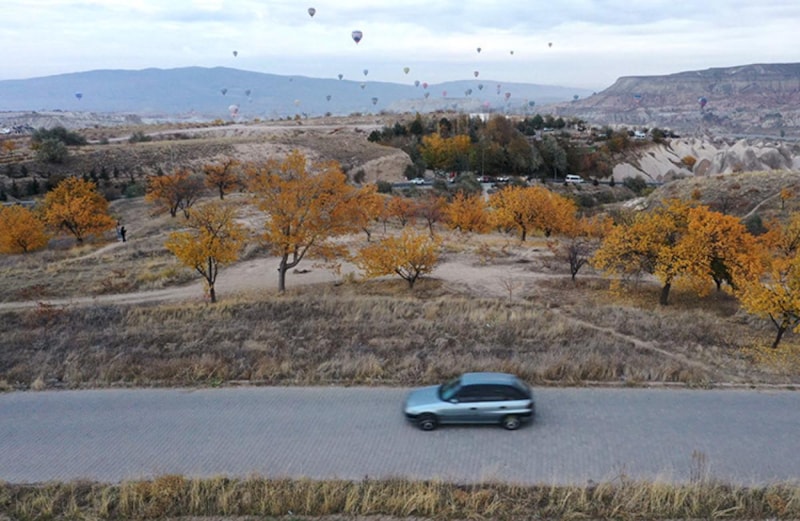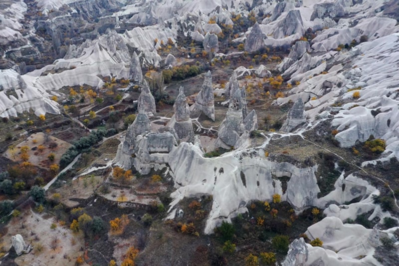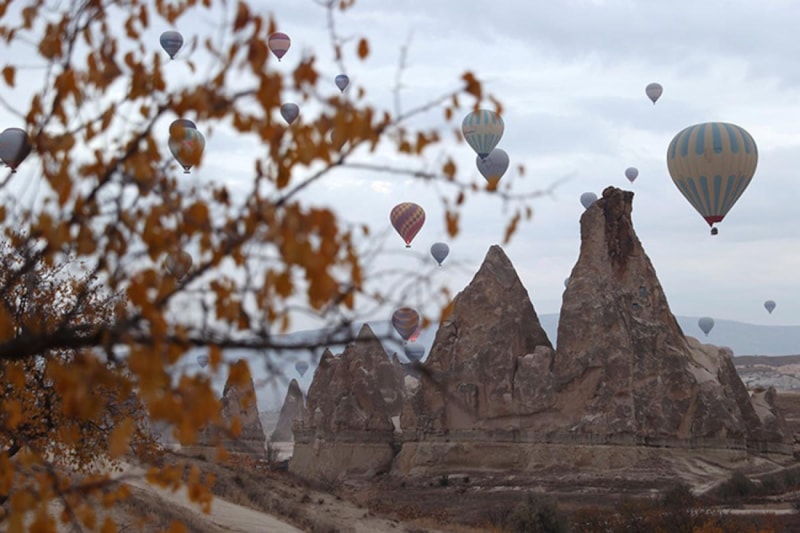 UNESCO Dünya Mirasları Listesi'nde yer alan Kapadokya'da kış aylarında kar yağışı ile beyaza, ilkbahar ve yaz mevsiminde yeşile ve çiçeklerin farklı renklerine bürünen bölge, sonbaharda da konuklarına masalsı görüntüler sunuyor.
