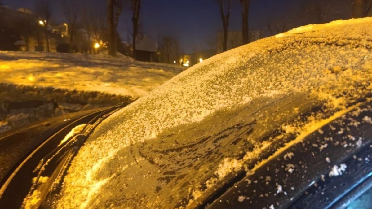 Kentte dün gece eksi 5 dereceye düşen hava sıcaklığı nedeniyle araçların camları dondu.