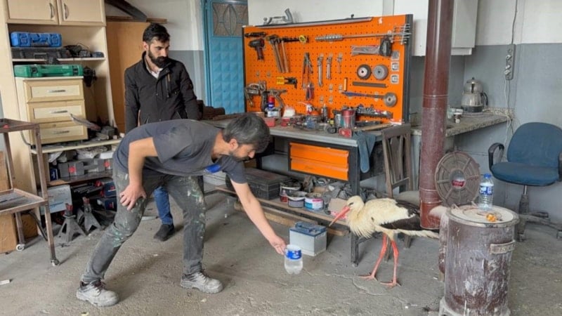 Antepoğlu Sanayi Sitesi'nde çalışan kaporta ustası, bitkin halde bulduğu bir leyleği önce besleyip ısıttı, sonrasında Karabük Belediyesi Hayvan Barınağı ve Bakım Evi'ne teslim etti.
