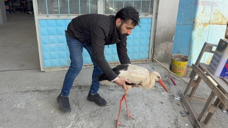 Veteriner hekimler tarafından yapılan ilk incelemede, leyleğin uzun süre aç ve susuz kaldığı, bu nedenle bitkin düştüğü tespit edildi.